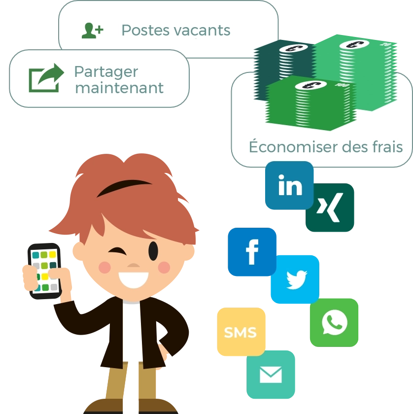 Vous souhaitez pourvoir rapidement les postes vacants dans votre entreprise tout en réduisant vos coûts de recrutement ? Le programme de recommandation d’emploi du réseau social d’entreprise LOLYO vous facilite la tâche. Vos employés peuvent partager en quelques clics les offres d’emploi que vous publiez dans l’application d’entreprise sur leurs propres réseaux sociaux ou dans des messageries instantanées telles que WhatsApp. Vos offres d’emploi bénéficient ainsi d’une plus grande portée, la recommandation d’emploi porte ses fruits et vous trouvez beaucoup plus facilement les candidats adéquats. Autre point fort : l’outil d’intégration de LOLYO, qui fournit automatiquement toutes les informations importantes aux nouveaux membres de l’équipe avant leur entrée en fonction et pendant leurs premiers jours grâce à une automatisation pratique.