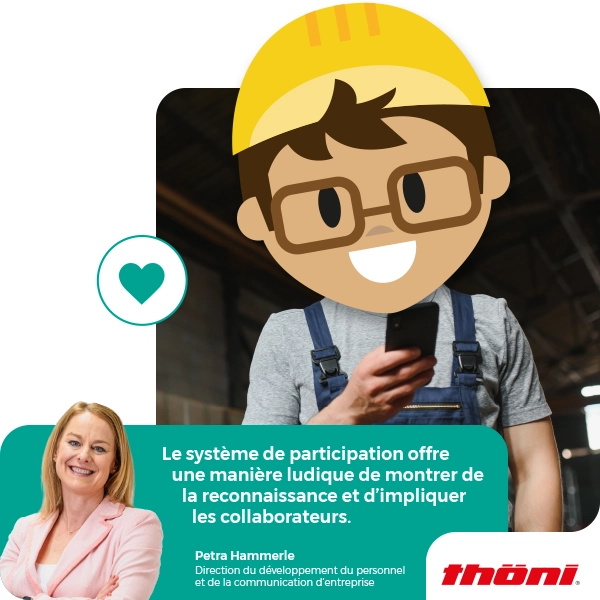 Pour que tous utilisent l’application pour les employés avec enthousiasme en s’engageant pleinement, LOLYO a développé le système de participation : un outil de motivation intégré qui permet de récompenser l’activité au sein de l’application par des points ; comme le fait d’aimer ou de commenter les articles ou de partager des postes vacants. Ces points peuvent ensuite être échangés dans la boutique intégrée à l’application : ainsi, tout le monde s’amuse à participer chez LOLYO.